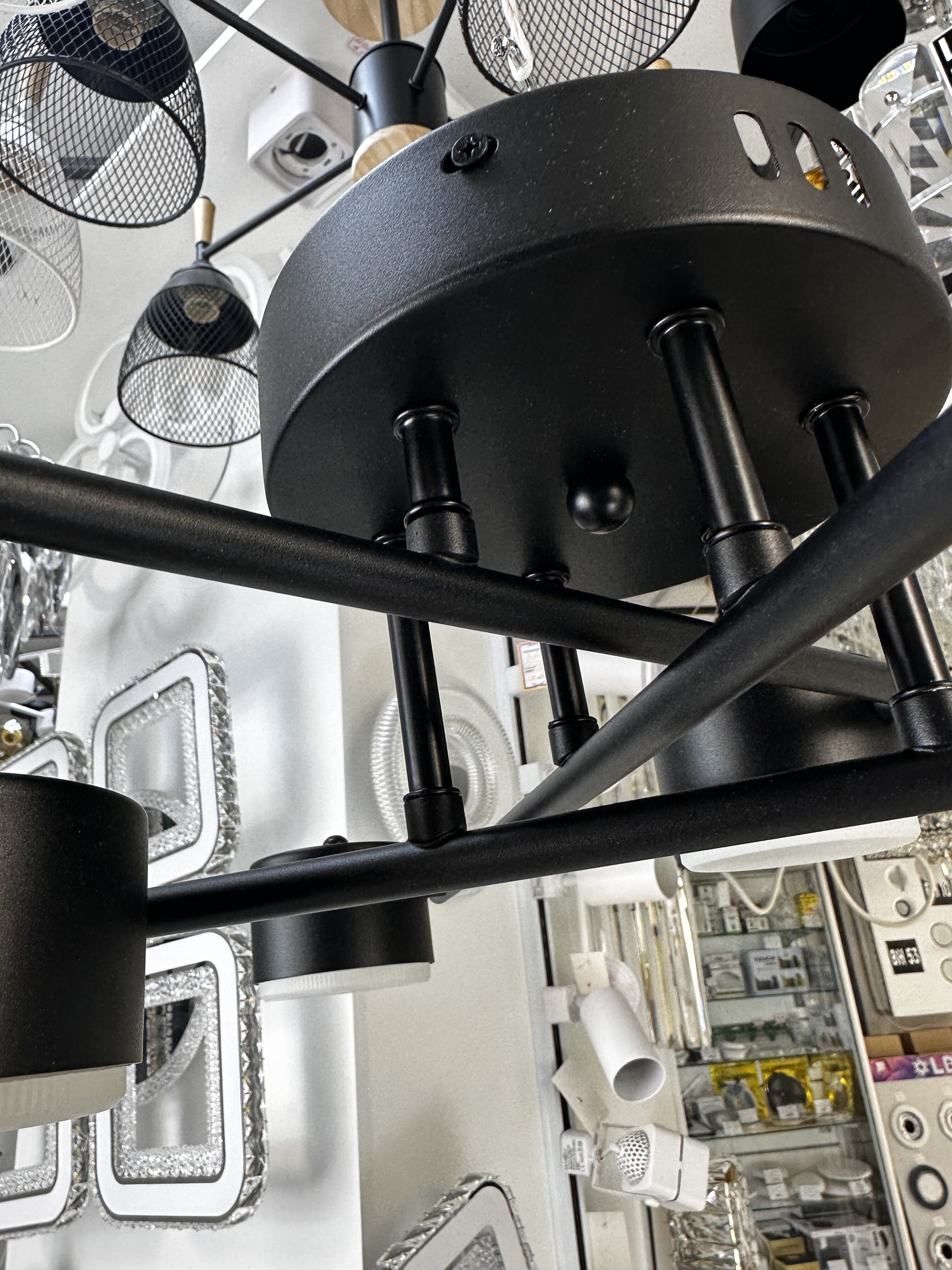 Потолочные светодиодные люстры ПОТОЛОЧНАЯ СВЕТОДИОДНАЯ ЛЮСТРА В СТИЛЕ ЛОФТ GX5308/6 BK, 72W, 3 РЕЖИМА, GX53, БЕЗ ПУЛЬТА